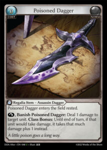 Poisoned Daggerは、1ターンのダメージ量を劇的に引き上げることができます。ただし、Poisoned DaggerはHindered(レスト状態)で場に出るため、準備の整った相手には慎重に対処されてしまいます。